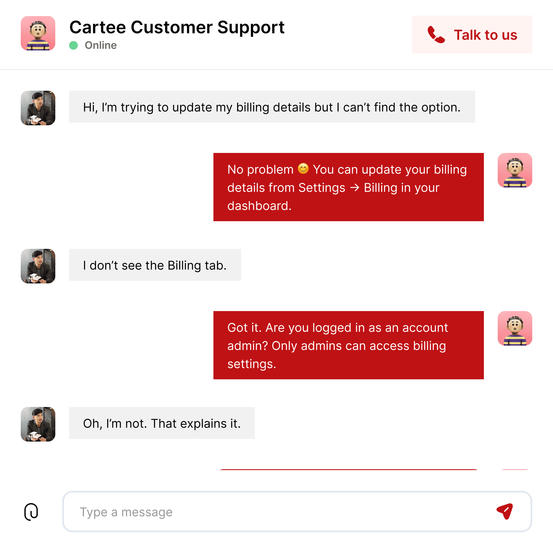 Resolve common questions automatically and hand off to humans when it matters — all from one simple support tool.